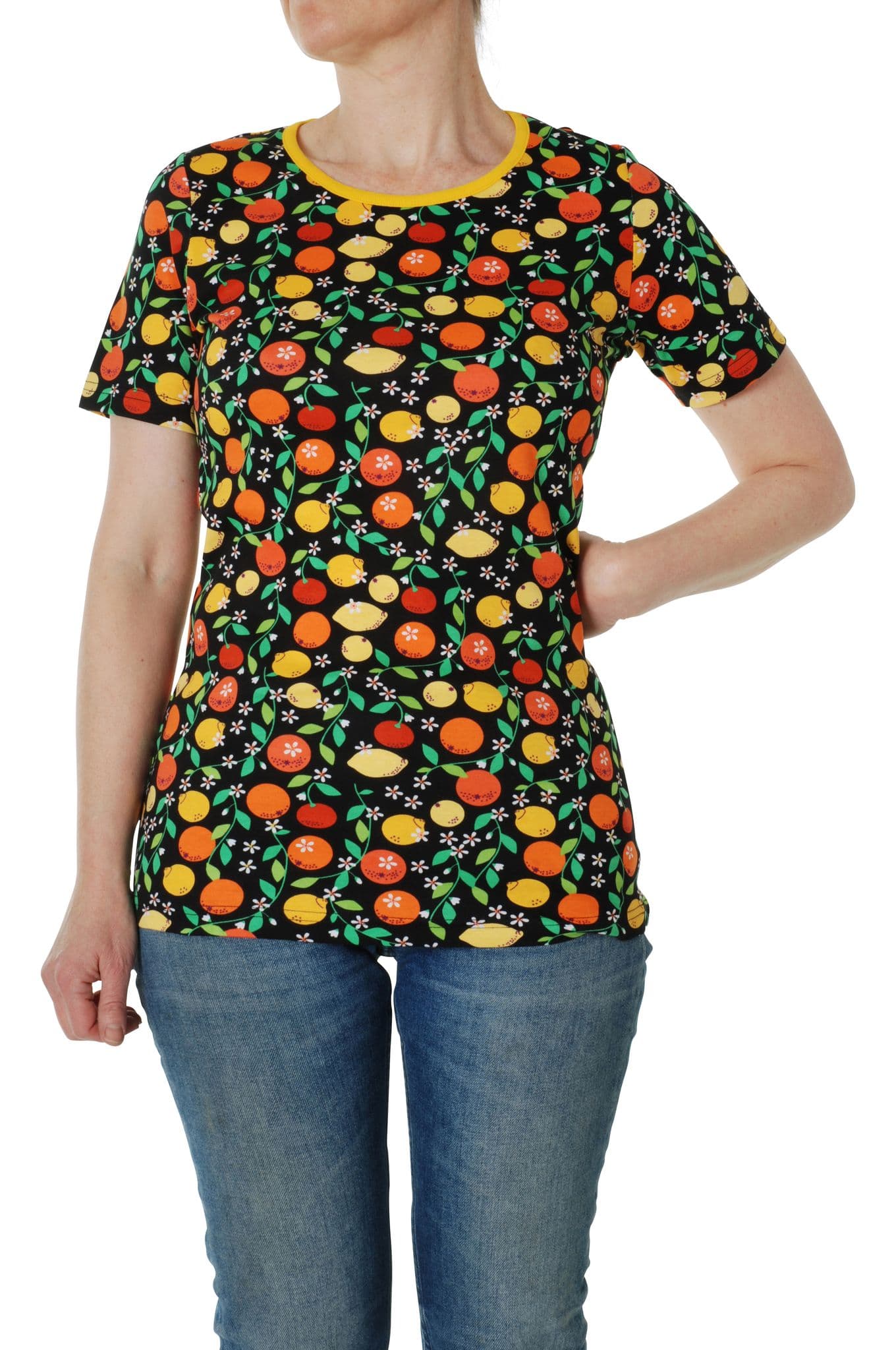 Duns Sweden Mama/Adult size Long sleeve top, in a Black Citrus print. Made from 100% GOTS Certified Organic Cotton Interlock